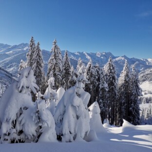 Schmecken Sie die Stille und wandern Sie mit unserem Guide auf Schneeschuhen durch eine magische Landschaft. Wir schauen uns im Vorfeld die Schneequalität an und wo Sie diese in vollen Zügen genießen können.