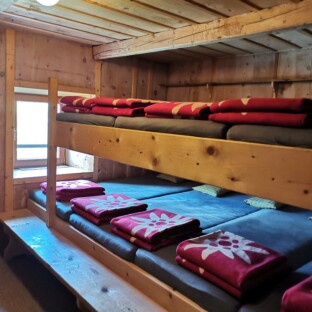 In the mountain huts there are a number of rules and customs, in order to structure the 'coexistence' with the other attendees. The caretaker of the hut will assign you a place to sleep. We often sleep in 'a Lager', a dormitory with a row of narrow mattresses or bunk beds next to each other. The limited spaces are designed to accommodate as many people as possible. Blankets and pillows are always provided. To keep the sleeping quarters neat and livable, everyone folds their own blankets neatly in the morning. Because the blankets are not washed after every user, a sleeping bag is often mandatory.